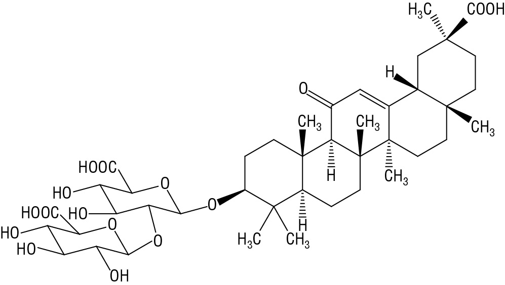 Основными биологически активными соединениями сырья и препаратов солодки голой и солодки уральской являются тритерпеновые сапонины (глицирризиновая кислота) и флавоноиды (ликуразид) (рис. 1, 2) [1, 4–7].