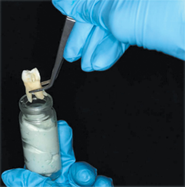 Рис. 3. Помещение зуба в оттискную массу