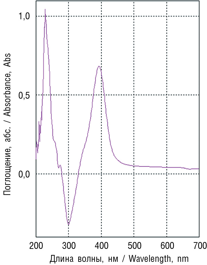 Рис. 3. Дифференциальный УФ-спектр раствора рабочего стандартного образца барбалоина
