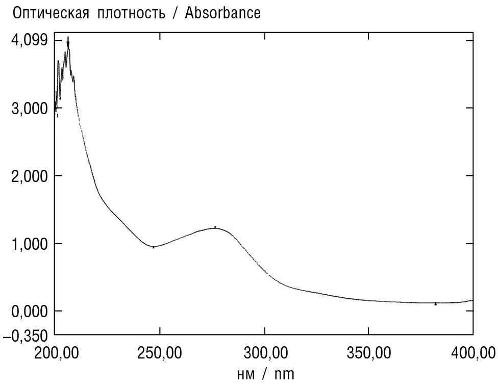 Рис. 3. Спектр поглощения экстракта из образцов крови (содержание верапамила 5,0 мкг/мл)