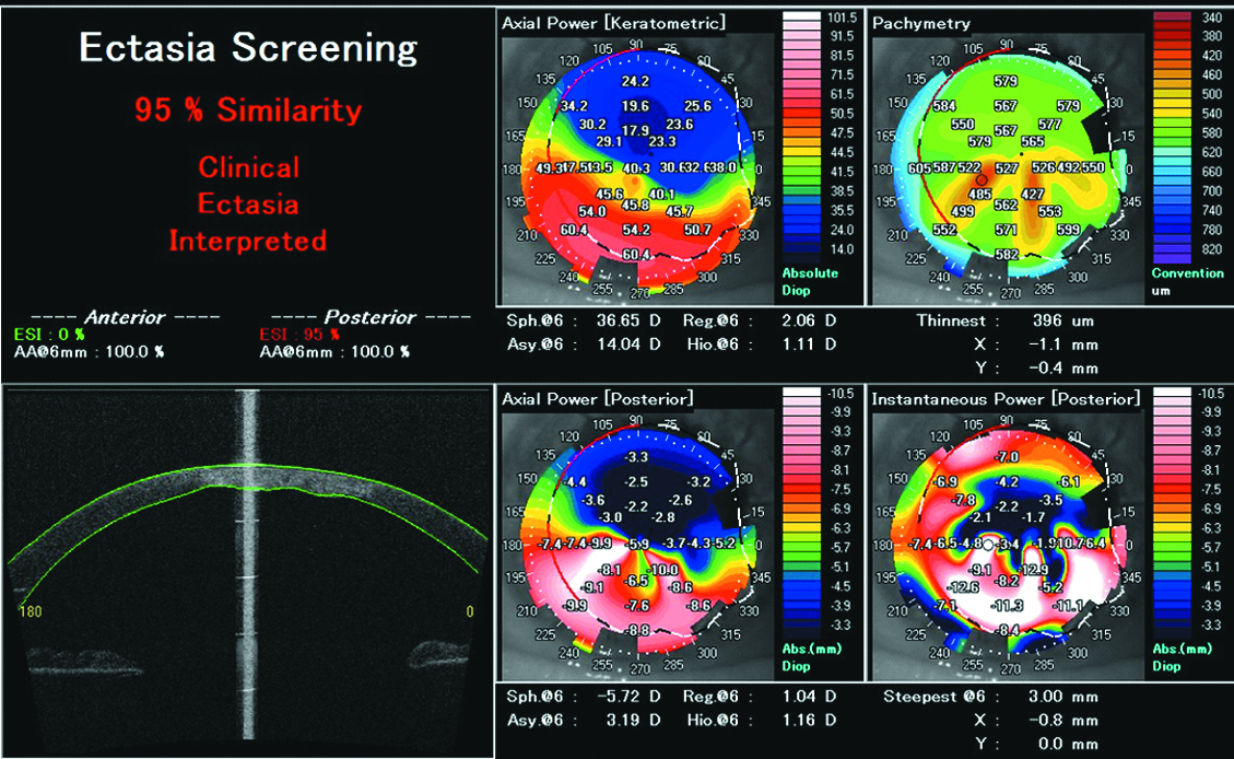 Figure 1. Corneal topography, right eye. Corneal ectasia (CASIA-1, Tomey Corporation, Japan)