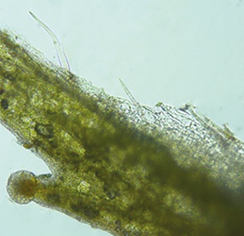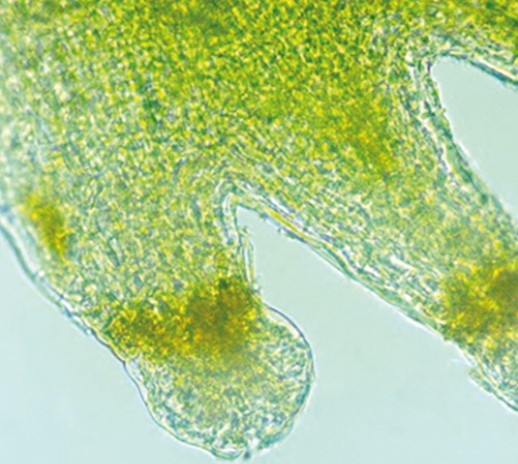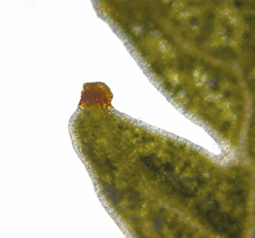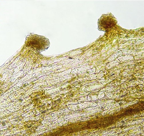 Железки, устьица и волоски также присутствуют на чашелистиках (рисунки 2.9, 2.10, 2.11). Прицветники содержат вытянутые по форме клетки с железками по краям (рисунок 2.12). Все части растения содержат друзы оксалатов кальция.