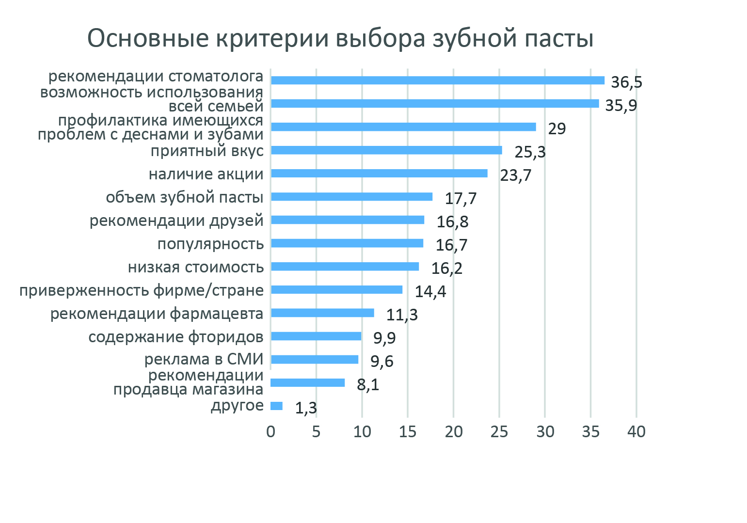 Рисунок 3. Основные критерии выбора зубной пасты (в %).