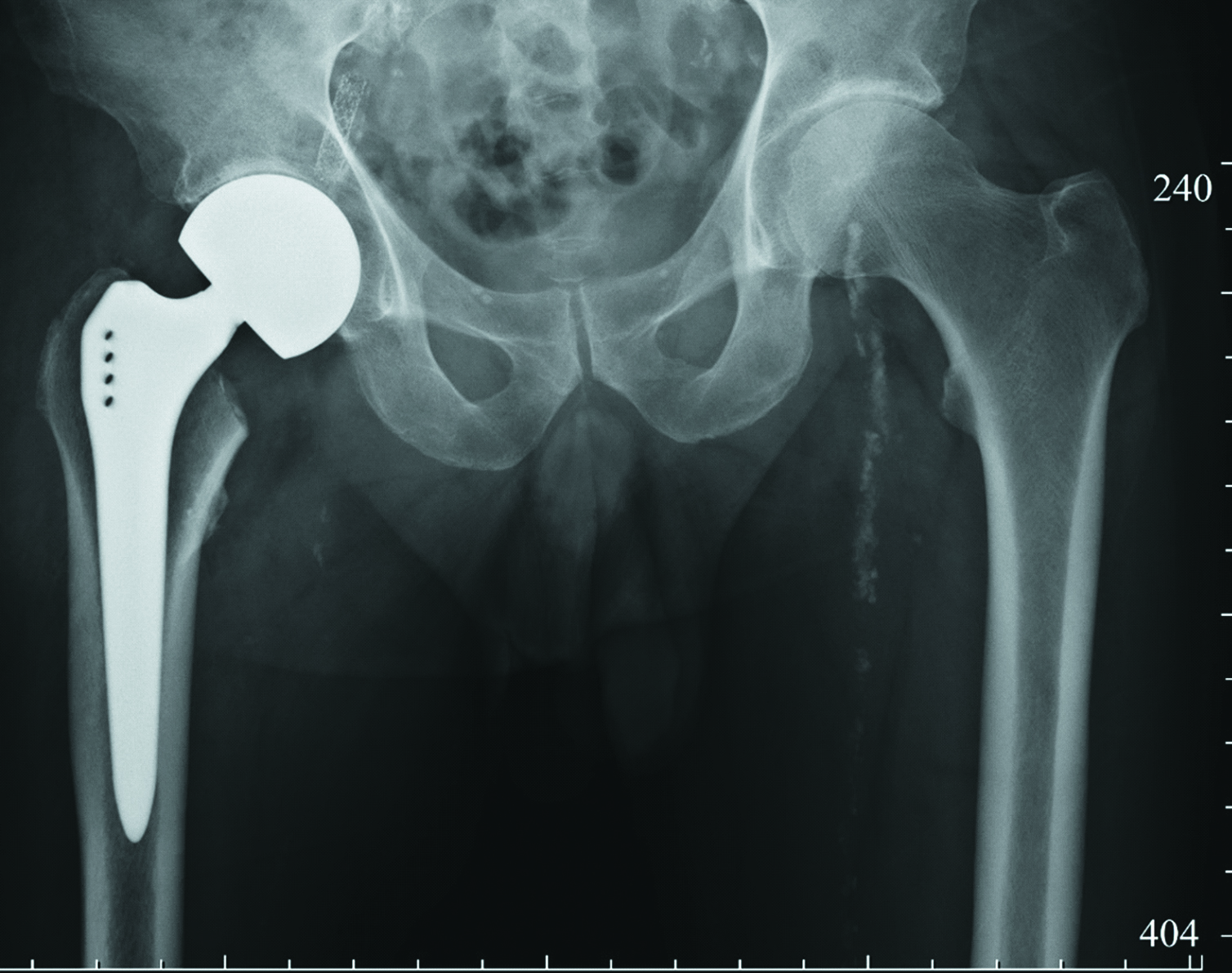 Figure 1. X-ray of the right hip joint of patient Z., one day after surgery.