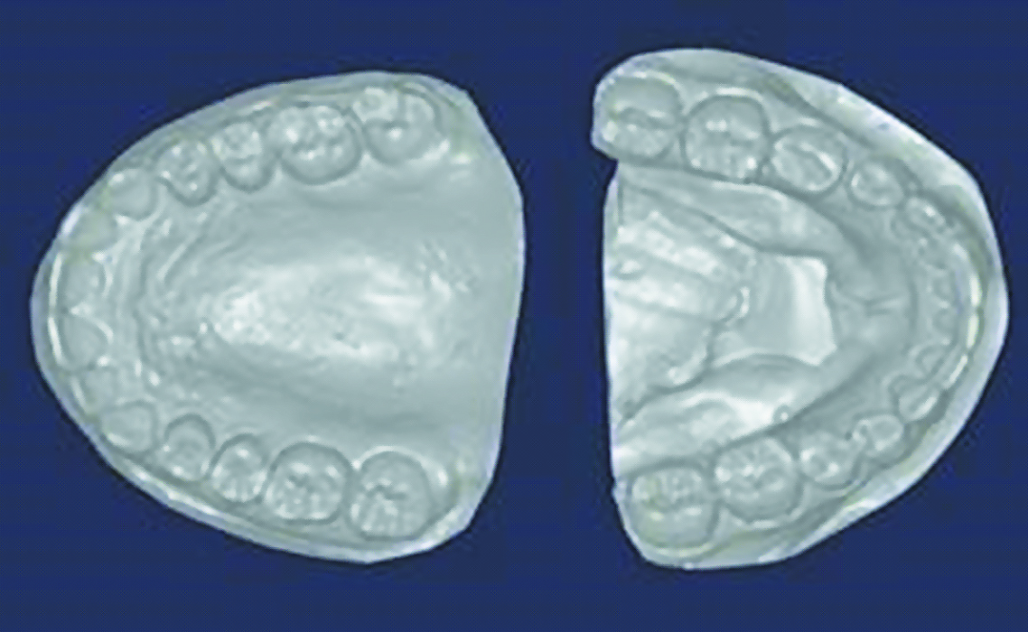 Затем были сняты слепки альгинатной массой для дальнейшего изготовления диагностических гипсовых моделей с их последующим сканированием (рисунок 2).