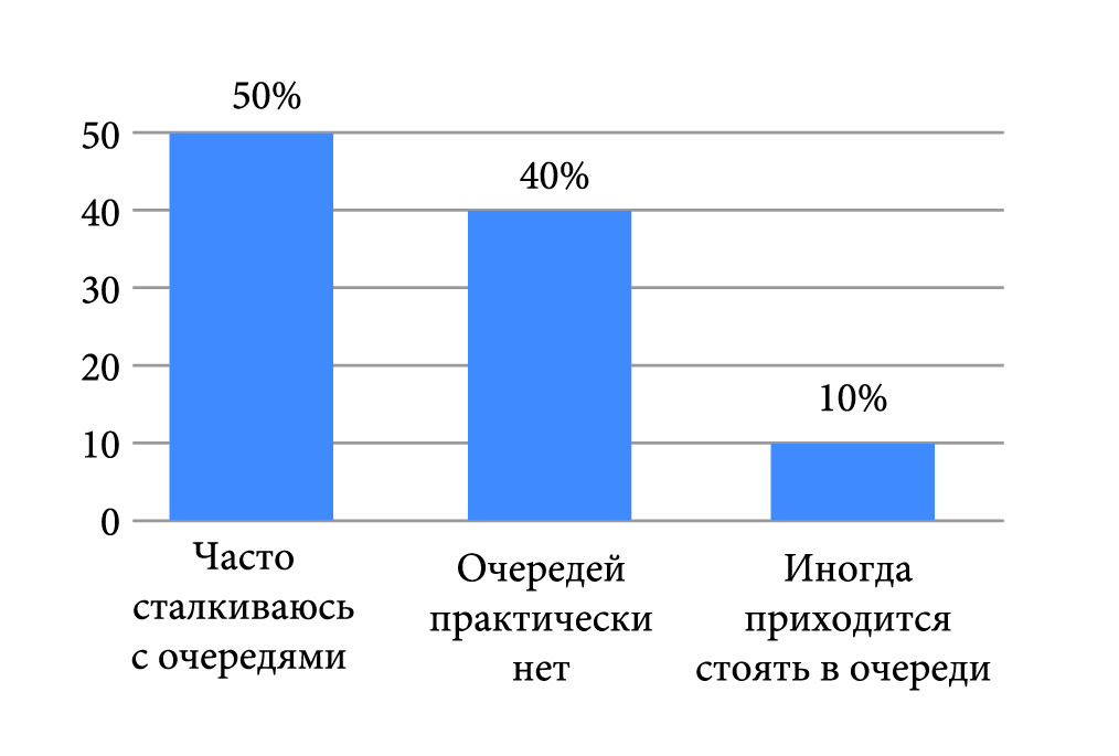 Рисунок 5. Частота возникновения очередей в аптеках, %.