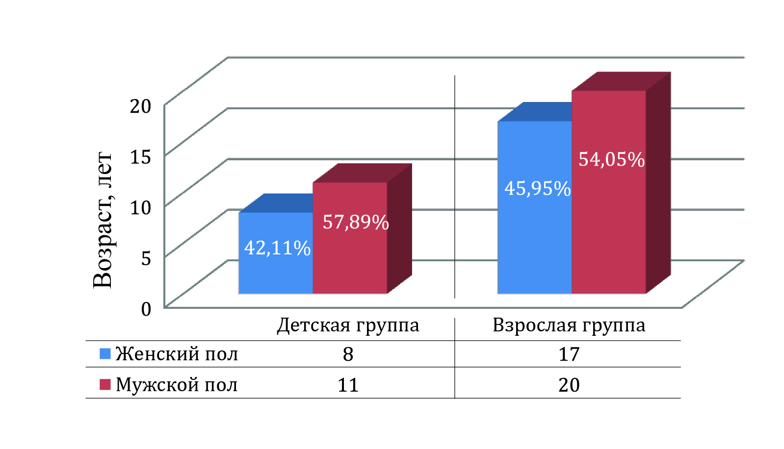 Рисунок 3. Распределение по полу и возрасту среди обратившихся к инфекционисту.