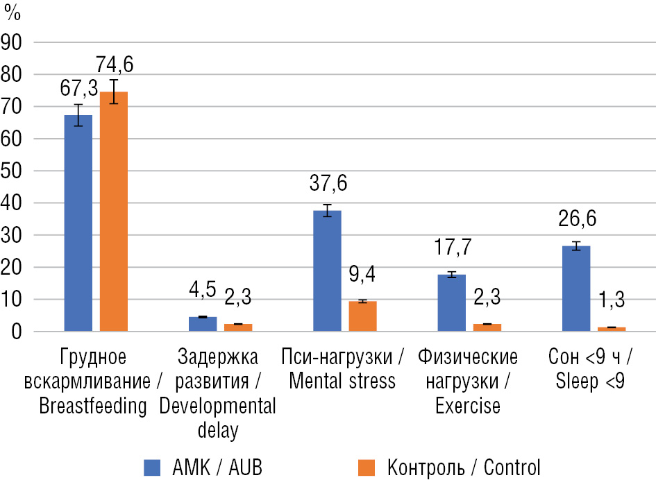 Рис. 3. Факторы риска развития аномальных маточных кровотечений (АМК) у девочек / Pic. 3. Risk factors for the development of abnormal uterine bleeding (AUB) in girls