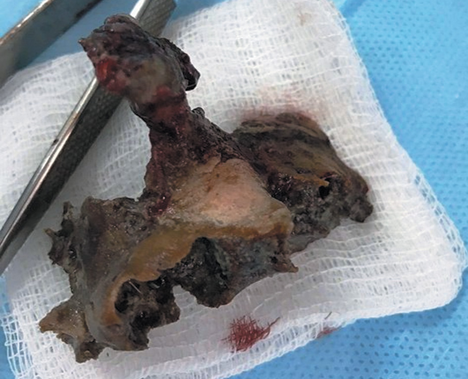 Fig. 7. The sequestration in the maxilla with involvement of the zygomatic bone / Рис. 7. Секвестр в области верхней челюсти с вовлечением участка тела скуловой кости