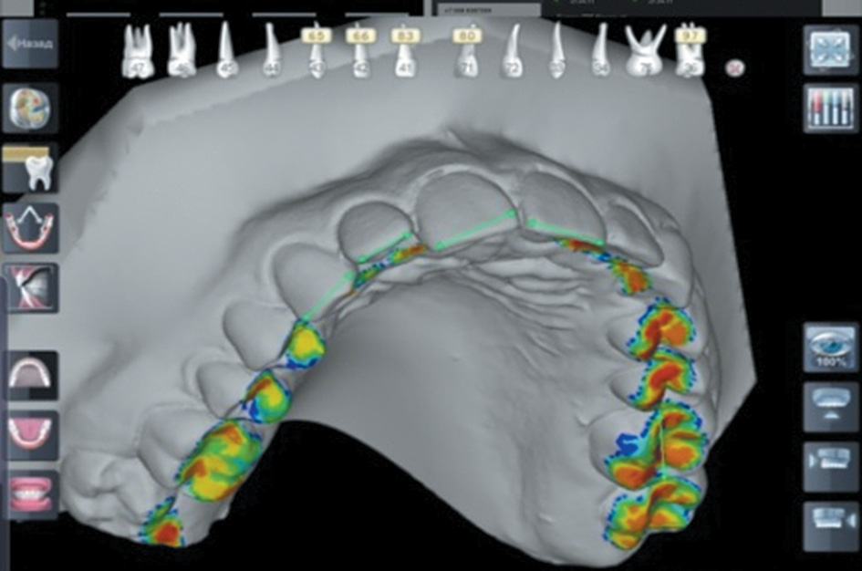 Рис. 3. Антропометрия на 3D-моделях зубных рядов / Fig. 3. Anthropometry on the 3D cast model of teeth