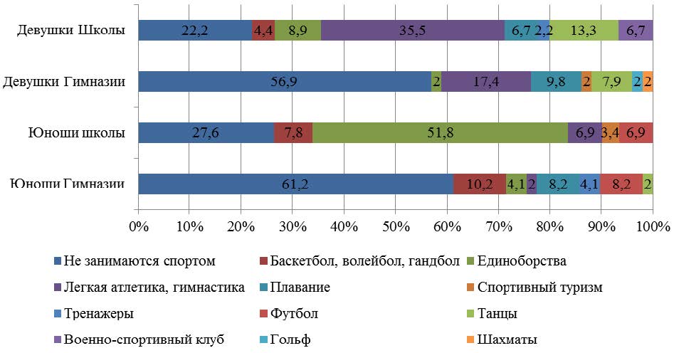Рис. 1. Предпочтения в спорте старшеклассников (%)